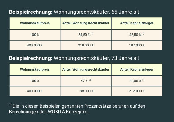 - Der Prozentsatz ist abhängig vom Alter des Wohnungsrechtskäufers.